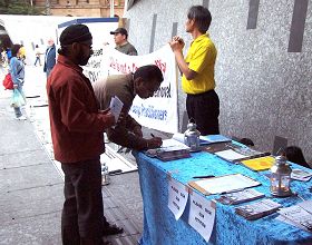法轮功学员表示,十年前的七月二十日,中共政权开始全面血腥镇压法轮功,千千万万的法轮功学员遭遇惨无人道的酷刑折磨,甚至失去了生命,只为追寻“真、善、忍”真理。这些善良无辜的学员被迫害得家破人亡,妻离子散。十年来,法轮功学员不畏暴力和艰辛,风雨无阻的向世人讲清法轮功被迫害的真相。他们的善良与慈悲,唤醒了无数人的良知善念。