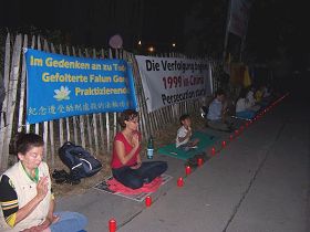 ![]() 2009年7月20日,卡尔加里法轮功学员在中领馆前烛光悼念在过去10年中被中共迫害致死的法轮功学员。 |