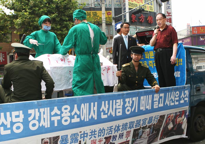 两位围观的韩国妇女朴美淑(音译,四十六岁)和崔荣珠(音译,六十六岁)表示:“听到活摘器官的事,简直不敢相信,那是杀人哪,那怎么行。共产党就应该灭亡了。”