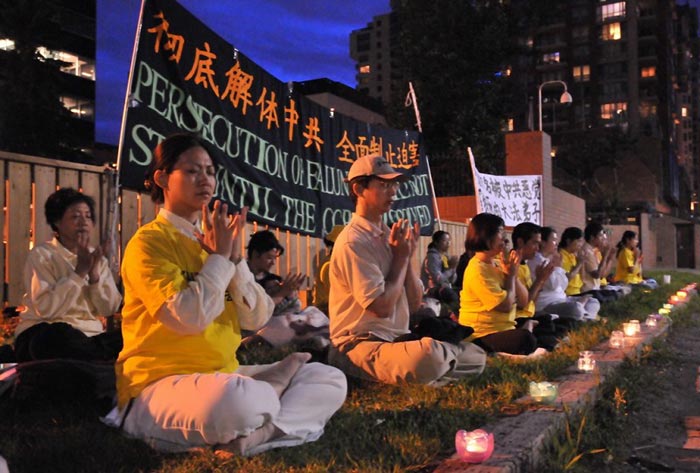 ![]() 2009年7月20日,卡尔加里法轮功学员在中领馆前烛光悼念在过去10年中被中共迫害致死的法轮功学员。 |