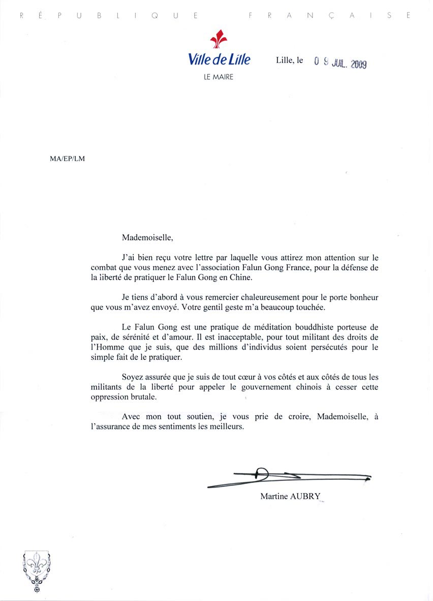 奥布里女士在信中说,法轮功是一套带来和平、祥和和爱的佛家静坐功法。对于所有像我这样的人权捍卫者,数百万计的人仅仅因为修炼这一功法而受到迫害是不可接受的。