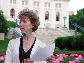 二零零九年七月二十日是法轮功和平反迫害十周年。美国威斯康星州法轮功学员在威州州府广场和威大麦迪逊分校图书馆广场分别举行了集会及烛光夜悼活动。当地法轮功学员汉默女士在集会上发言冯建先生讲述