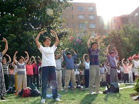 这十年来,陶妈妈每天往返,要花上四个小时。还有一位长年到中使馆的薛妈妈,今年已经八十九岁,也是天天来,陶妈妈想说对方年纪已大,不能再排班静坐。薛妈妈却说,“没有关系,我还是会坚持来,修炼的路我要自己走。”