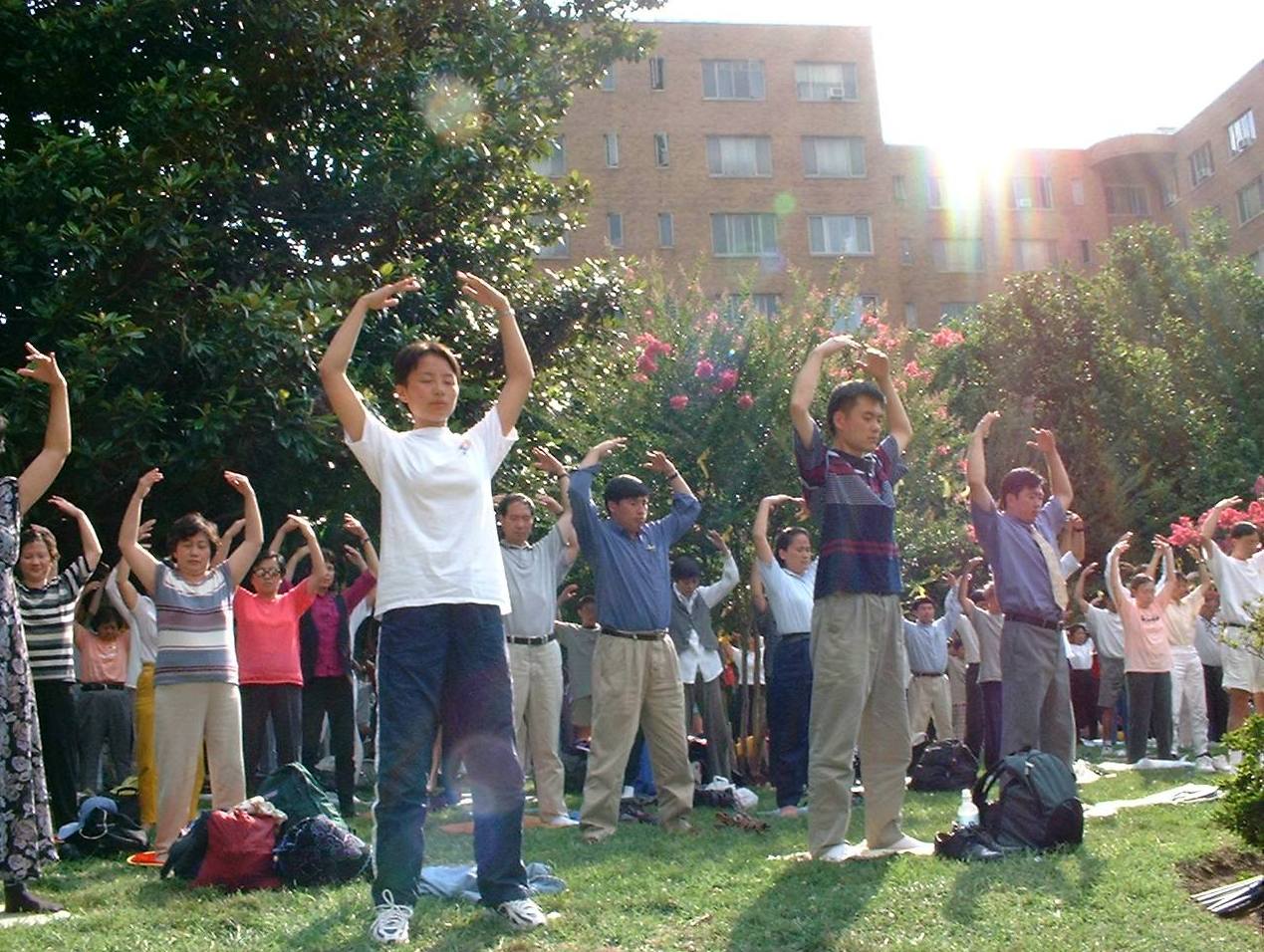 一九九九年七二零中共开始迫害法轮功,面临这场迫害,当时美国各地学员齐聚到了国会山庄前的草坪,有些是请假来的,假期结束了,各自就回去了,然后又再请假过来,陆陆续续的,最多的时候有一、二千人,在国会山庄的草坪上,呼吁美国政府关注这件事。