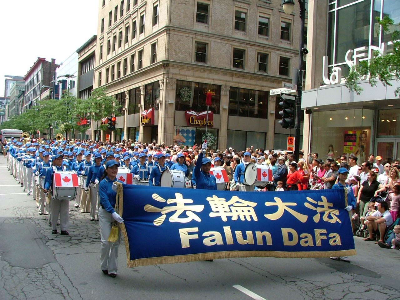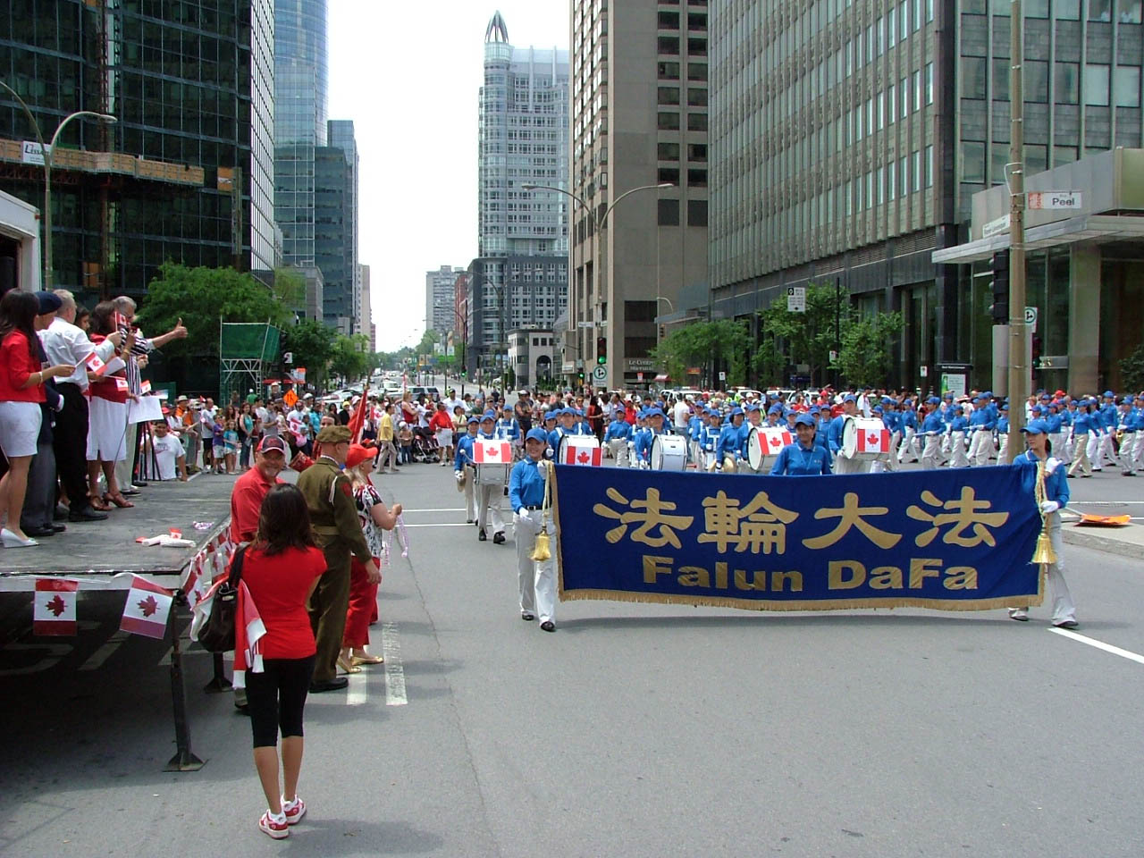 ![]() 法轮大法天国乐团应邀参加蒙特利尔市第一百四十二届加拿大国庆游行。图为法轮大法天国乐团游行队伍走过蒙特利尔最繁华的圣凯瑟琳大街。 |