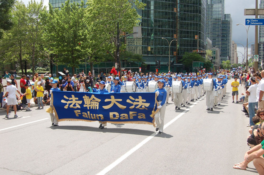 蒙特利尔法轮功学员Thanh 介绍说,七月一日参加国庆游行后的第二天接到一个电话,是一位信仰基督教的爱尔兰人打来的。他说,在观看国庆游行时接到一张法轮功传单,回家仔细阅读后想学炼法轮功,于是在传单上找到Thanh的联系电话,并称赞说:“天国乐团的队伍是最漂亮的,由于你们的参与,提高了整个游行的质量。”