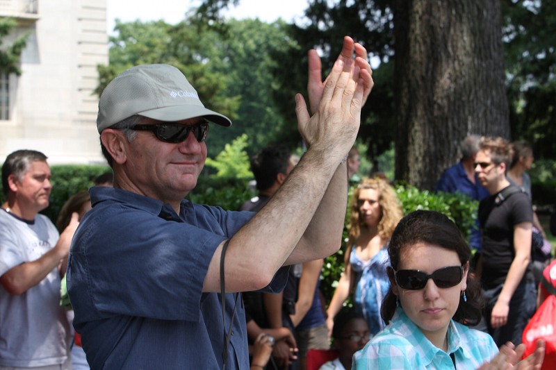 一对来自加拿大的父子对法轮功游行队伍赞赏不已,直呼“太精彩!太壮观了!”那位年轻人是加拿大一所大学的学生会主席,他说,他曾邀请法轮功学员演讲,他的确知道中共对法轮功的残酷迫害,非常清楚。很高兴看到他们可以在美国自由炼功。