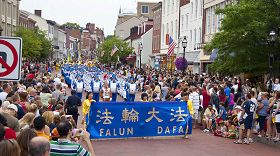 法轮功学员参加埃文斯敦美国独立日游行(图)