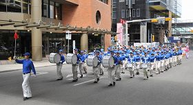 继参加了二零零九年七月三日的加拿大卡尔加里牛仔节大游行后,法轮功学员又于七月四日在卡尔加里市中心举行集会和游行,向人们展示法轮大法的美好。