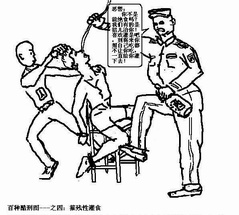七月四日晚上七点左右,昆山市“六一零”于会星、杨勇林反复抽谢红妹耳光,将谢红妹的牙齿打松二颗,恶警将谢红妹双手背铐并倒吊着往上提,并为此酷刑起名“坐飞机”,威逼谢红妹在“六一零”恶警们编造的假口供上签字,谢红妹正告恶警:终有一天我会把你们告上法庭!恶警们大声狞笑说“永远也不可能。”