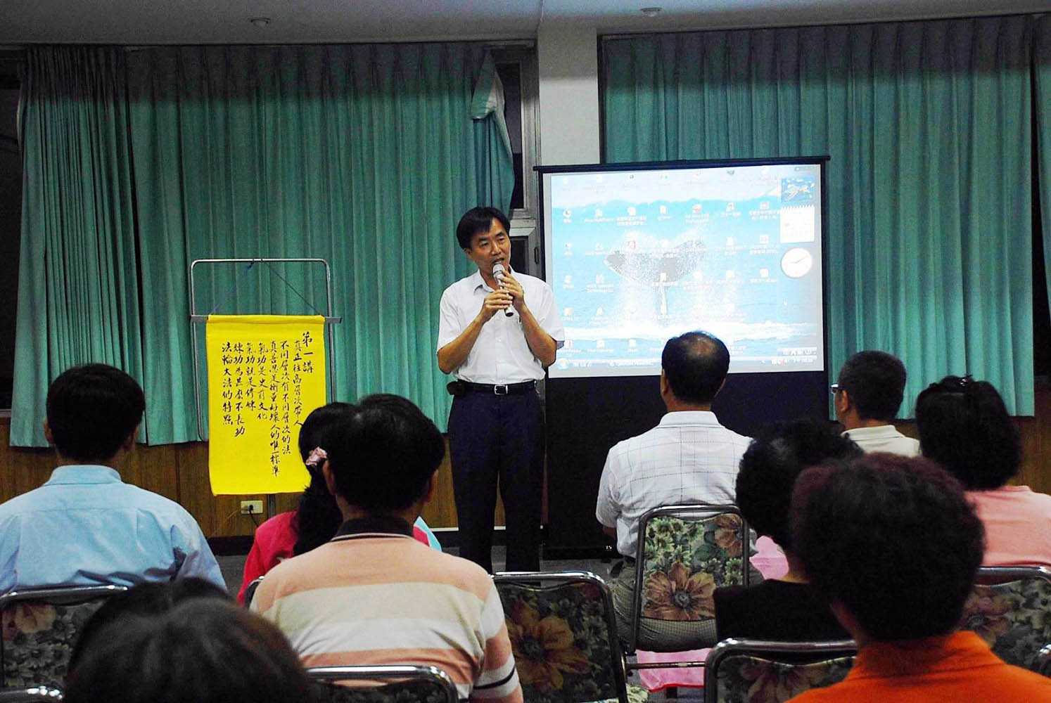 主办单位每一天都邀请一位法轮功学员交流修炼心得。六日,受邀学员是云林县桂林国小校长陈莹聪。陈莹聪的太太、两个小孩还有父母亲、弟媳妇都修炼法轮功。他说,今天晚上从云林山区开车过来,天空一轮明月,心情很愉快,但即使狂风暴雨他也会过来,因为要跟大家分享法轮大法的美好。他修炼大法后,觉得什么事都是好事,因为每一样事情都有修炼的因素在里面。