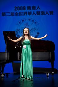 由新唐人电视台主办的第三届“全世界华人声乐大赛”于二零零九年七月三十一日在纽约曼哈顿格罗德•林奇剧院隆重登场,来自世界十多个国家和地区的四十五位选手各显身手,二十二位选手出线,将与在亚太区初赛出线的十多位选手一起进入明日的复赛。