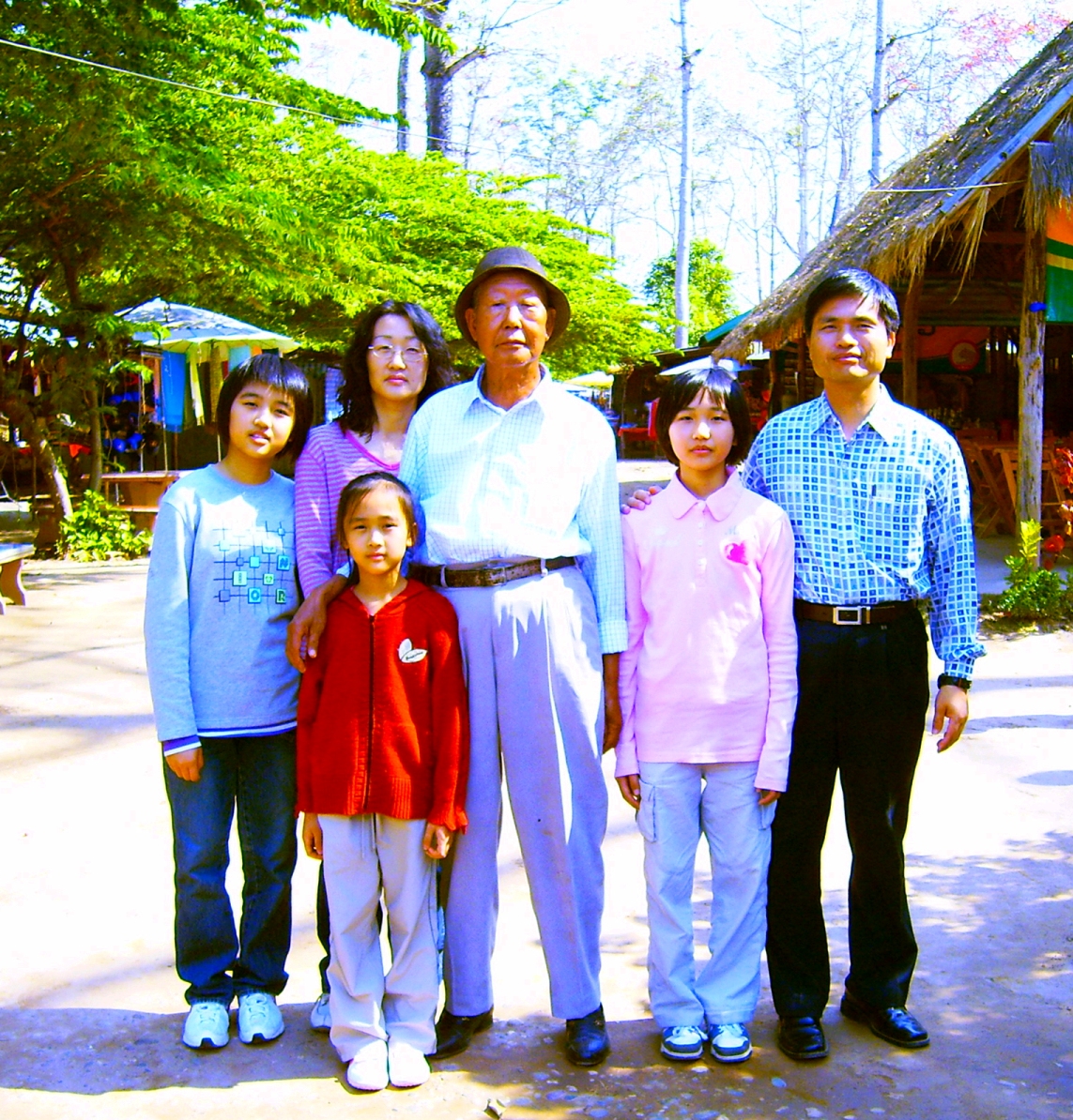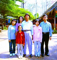 ![]() 邱先生一家人和岳父(戴帽者)的合影,岳父近期也开始学炼法轮功。 |