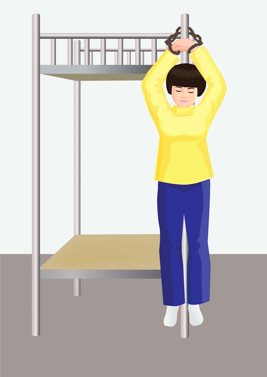 郎东月被非法关押在看守所一个月后,所长对她说;你收拾东西送你回家,当郎东月走出监室警察叫她签字,她喊“法轮大法好”;警察见她不签字,就用小刀尖扎她的手指肚,不签就扎,十个手指被扎的血肉模糊,她还是不签。他们就拽着她的手铐脚镣把她拖到后院的一间屋子里,象扔东西一样把她扔到床板上,在这里又折磨迫害了一个月。
