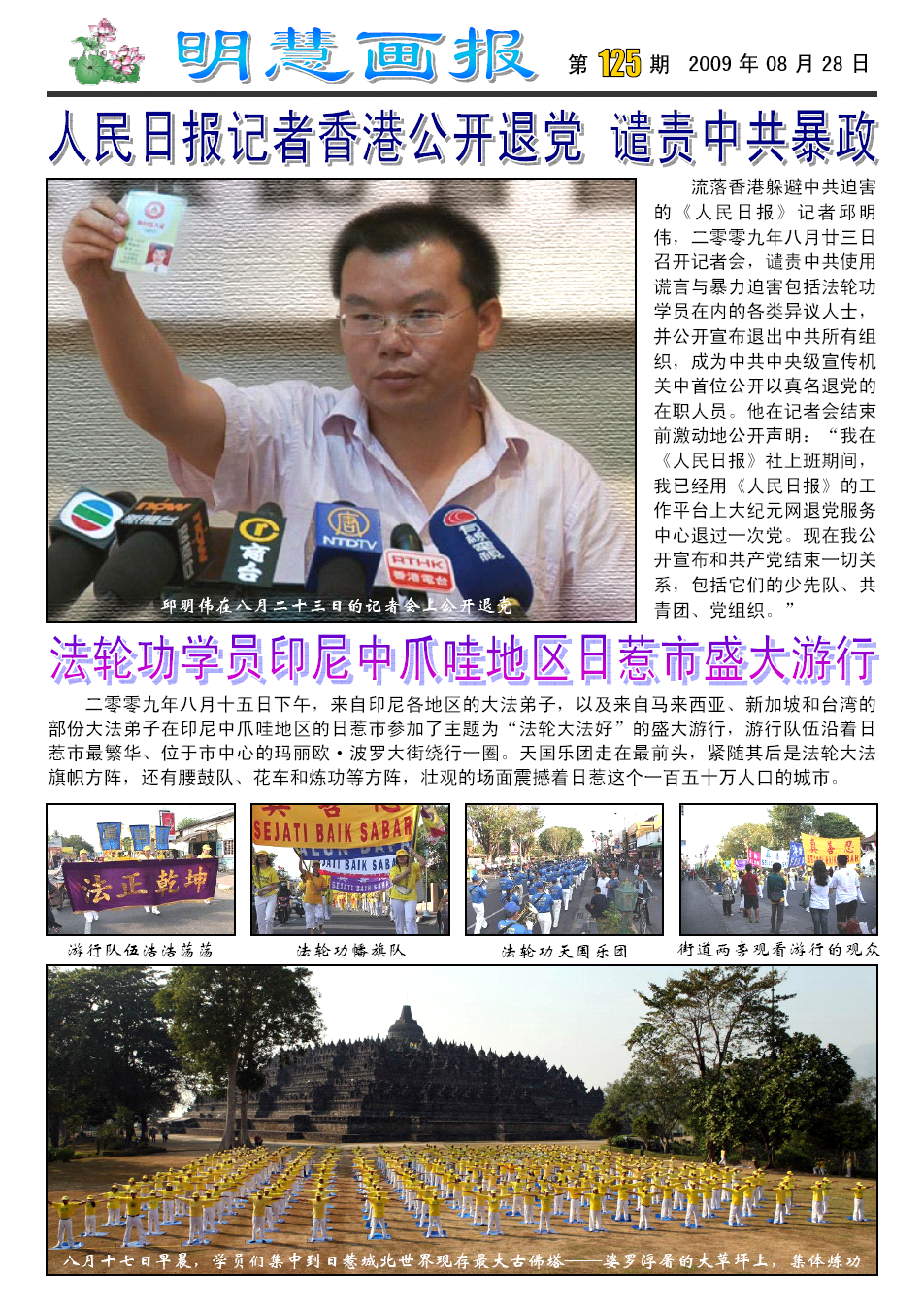 人民日报记者香港公开退党 谴责中共暴政法轮功学员印尼中爪哇地区日惹市盛大游行人生无悔日本学员反迫害游行 关西民众支持