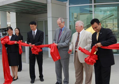 ![]() “真善忍美展”在加州圣何西市政厅展出,市长Chuck Reed(右三)、市议员代表Ash Kalra(右)、市人权委员会主席Robert Sipple(右二)为“真善忍美展”剪彩。 |
