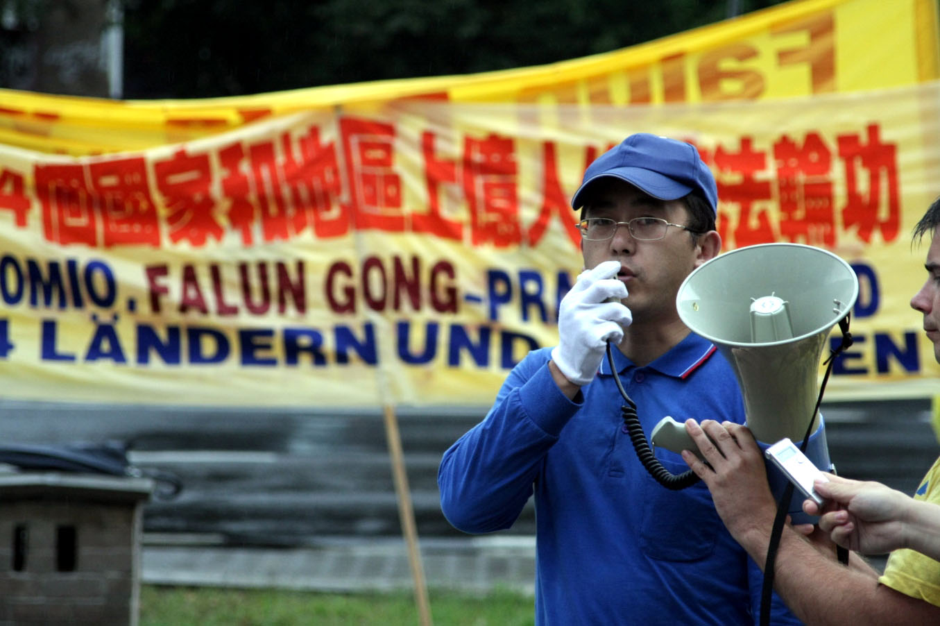 波兰法轮功学员张茜现场发言:天国乐团成员从不同的国家自费来到波兰,特别是来到中使馆前,就是为了告诉这里的中国同胞一句话:“法轮大法好”。中共迫害法轮功十年,可法轮功却走向了全世界一百多个国家。我们每个有良知的人都应该想一想这是为什么。中共从掌权开始就一直在肆无忌惮地杀人,可杀到法轮功这儿,却遭到挫败,因为法轮功修炼者用自己的生命和良知挡住了这把屠刀。我们反迫害,不仅是为了自救,更是为了中国千千万万的老百姓彻底免遭残害。为了中国,为了中国人民,更为了你们自己,希望你们作出正确的选择”。