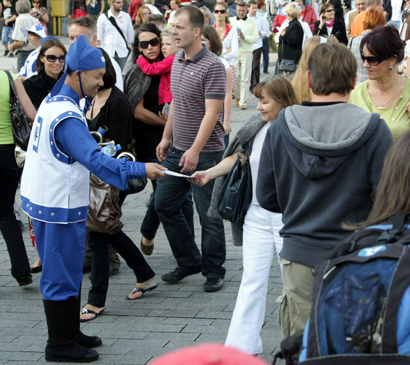 ![]() 波兰法轮功学员在中国城发真相资料 |