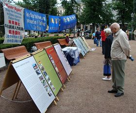 一位在慢跑的男士经过,特意停下来和学员聊天,他说:“共产党真是太可恶了。中国要是没有共产党,那里才会变好。全世界都没有共产党才会好。芬兰也是。你们这么做非常好。我衷心希望你们能等到(迫害停止)那天的到来。”他非常高兴能和学员交流,也很愿意仔细阅读关于法轮功的资料。