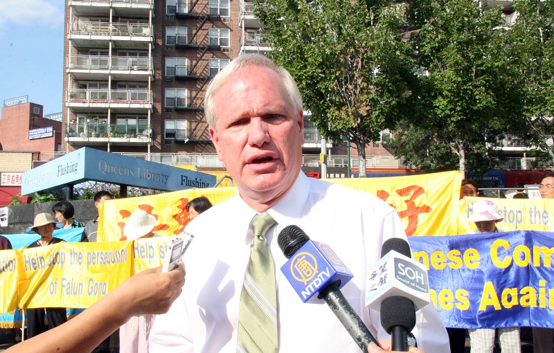 【明慧网二零零九年八月七日】二零零九年八月六日下午,纽约市议员托尼•艾维拉(Tony Avella)在皇后区法拉盛公立图书馆门前的新闻发布会上,就纽约亚美商业发展中心(Asian American Business Development Center)日前邀请他前往中国访问一事,正式表示拒绝。他说,中共当局不改善人权,民主国家的官员就不应该去访问。