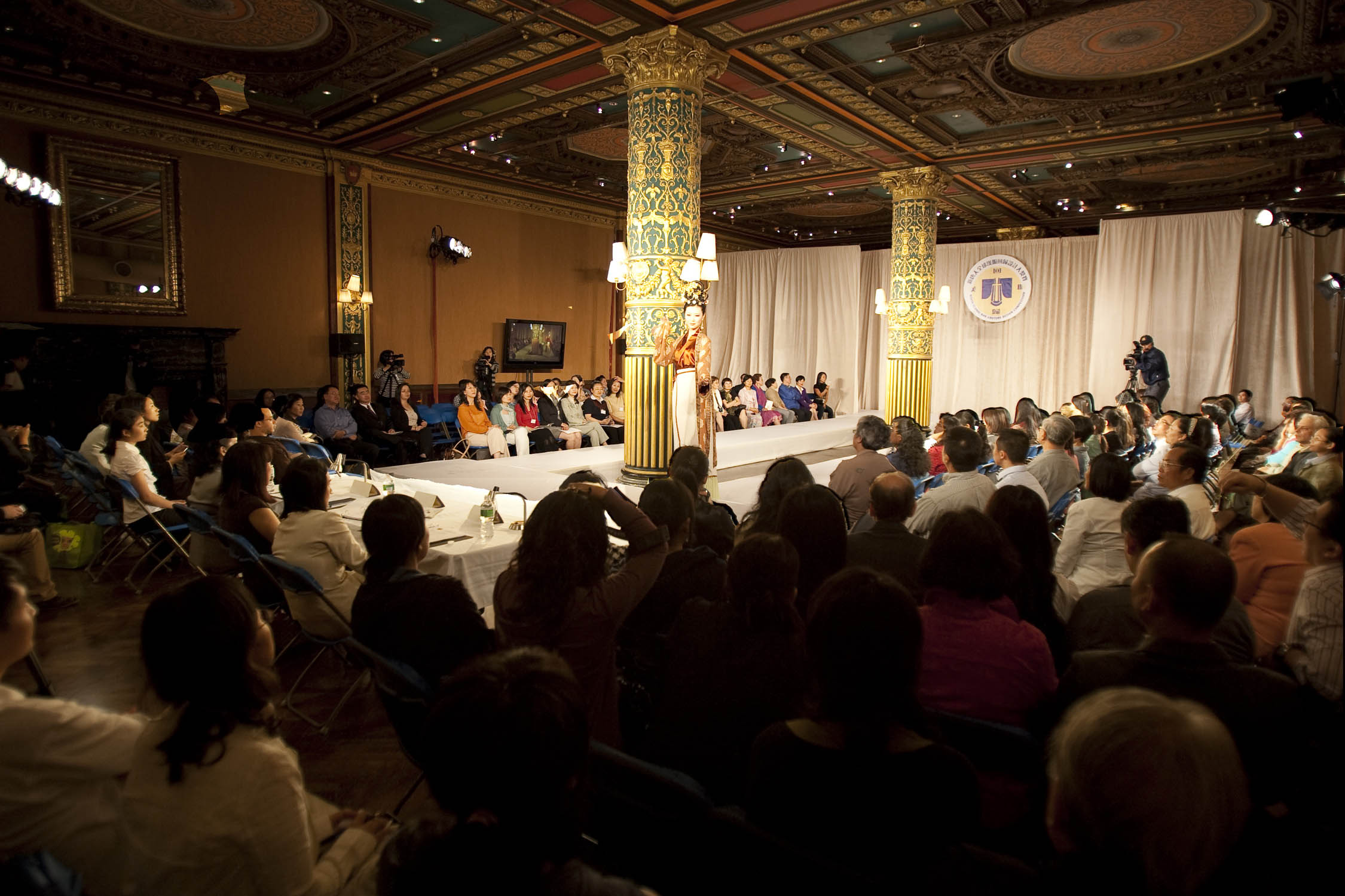 【明慧网二零零九年九月十一日】(明慧记者采菊纽约报道)新唐人电视台举办的第二届“全球汉服回归设计大奖赛”复赛于二零零九年九月十日晚在曼哈顿王子宴会厅闪亮登场。在当晚的走秀中,由二十多位模特儿们展示来自北美、亚洲、欧洲、澳洲等十几个国家和地区六十二位选手制作的两百多件汉服的风采。当晚的复赛色彩缤纷,华丽大气,让来宾们目不暇接,惊叹于汉服之美。