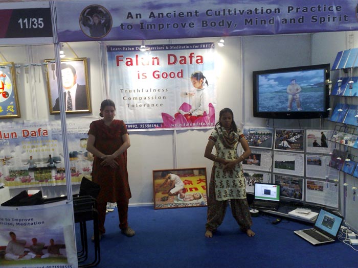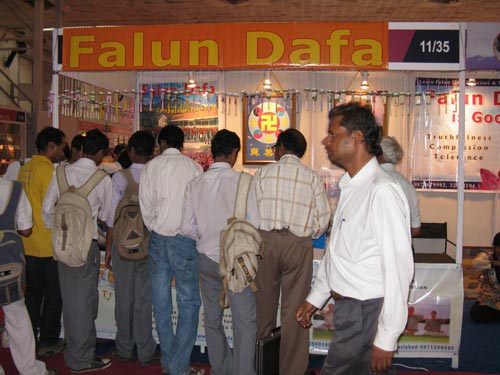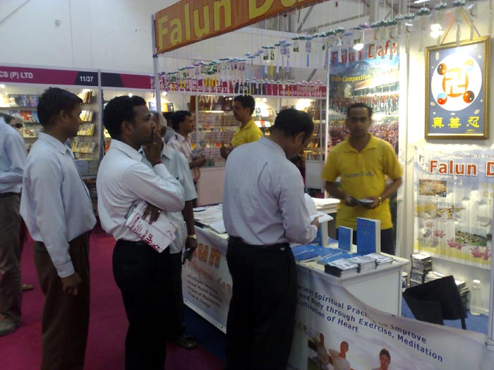 还有一位白发老人说是通过“德里电视”频道第一次知道了法轮功(编者注:亚洲天国乐团来印度新德里洪法,德里电视台曾就此采访并报道),这次一来到书展看到法轮功马上就学,快乐得象个小孩似的连说:“很好!很好!”