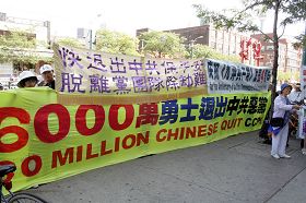 二零零九年九月十三日,由多伦多退出中共服务中心主办的“全球声援六千万勇士退出中共恶党”活动,在加拿大多伦多中区唐人街龙城商厦前举行。