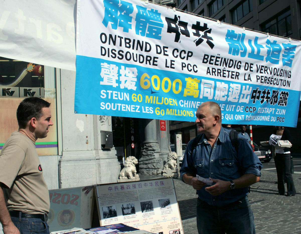 比利时退出中共服务中心的义务工作者潘女士说:“近来中共花费巨资,对外在各国搞各种宣传,用金钱铺路制造“和谐”,掩盖它们靠残暴镇压维持邪恶政权,以继续欺骗国际社会;对内以确保“庆祝”它夺取政权周年的安全为由,加剧对中国民众的残酷迫害。只有解体中共,才能停止迫害。我们在这里举办活动,声援六千万觉醒的中国民众退出中共这个邪恶组织。希望更多的中国人民和世界人民都能认清中共的邪恶本质,为早日结束中国人民的苦难,贡献一份力量。”