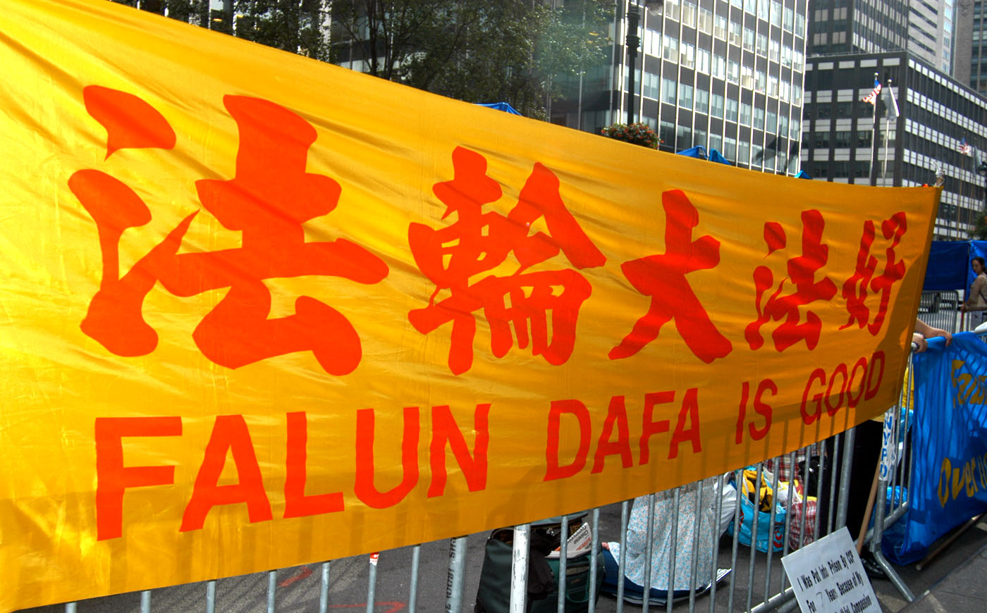 当日上午,法轮功学员在抗议地点打出“法轮大法好”、“真善忍”、“立即停止迫害”等横幅;还有的学员演炼功法,有的向过往行人派发真相资料。