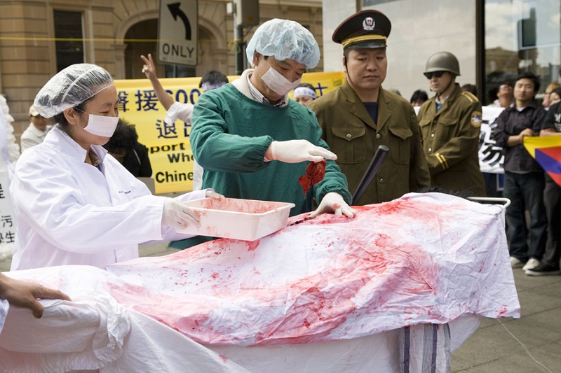 ![]() 街头剧揭露中共活摘法轮功学员的器官牟利 |
