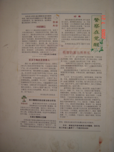 不干胶上写着:“天灭中共,退党团队保命,截止2009年7月20日三退已超5700万人”、“九评掀起5700万人退党团队”、“中国大陆公安国安迫害法轮功恶报知多少?”、“立即停止对法轮功的迫害”、“警察觉醒了”、“迫害法轮功彻底失败了”、及退党声明等。