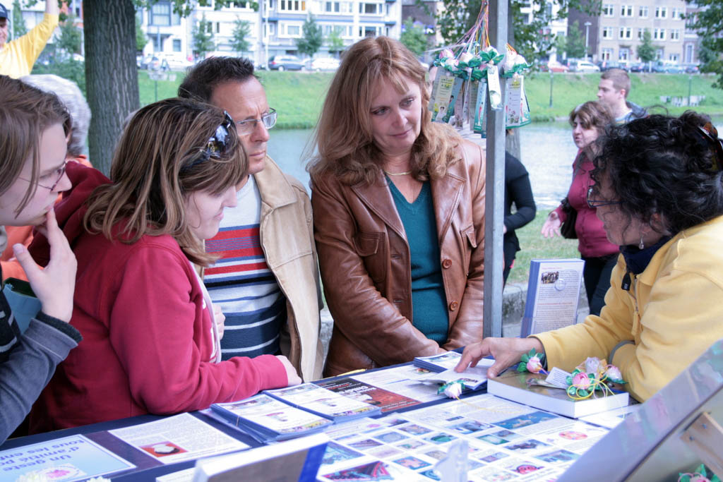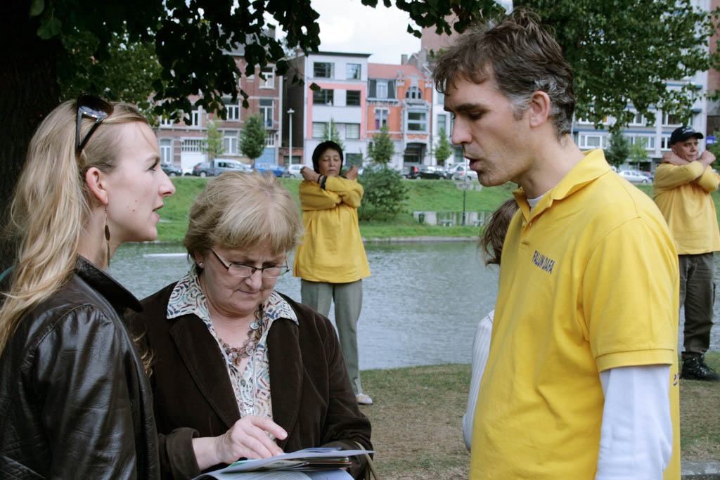 汉科内特先生(Denoit Henkinet)是一位为政府服务的社会工作者。他说自己是一个为了别人而忙碌的人。当他听到学员尼克(Nico)介绍法轮大法的修炼原则是“真、善、忍”后,马上询问哪里可以阅读到《转法轮》一书。他说:这正是他所需要的。学员告诉他法轮功书籍在法轮大法网站上,可以免费下载。他高兴地询问了网址,表示回去后一定上网站浏览。