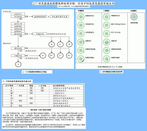 次品(劣质)光盘的来源是很多的,最常见的就是光盘大厂的次级甚至淘汰产品,还有某些盗码光盘工厂的产品,以下资料以VCD光盘为例,介绍了工厂对光盘成品的筛选和品质分级、及不同品质光盘的市场去向,非常说明问题,看完之后对光盘市场的运作情况应该有个初步印象了。