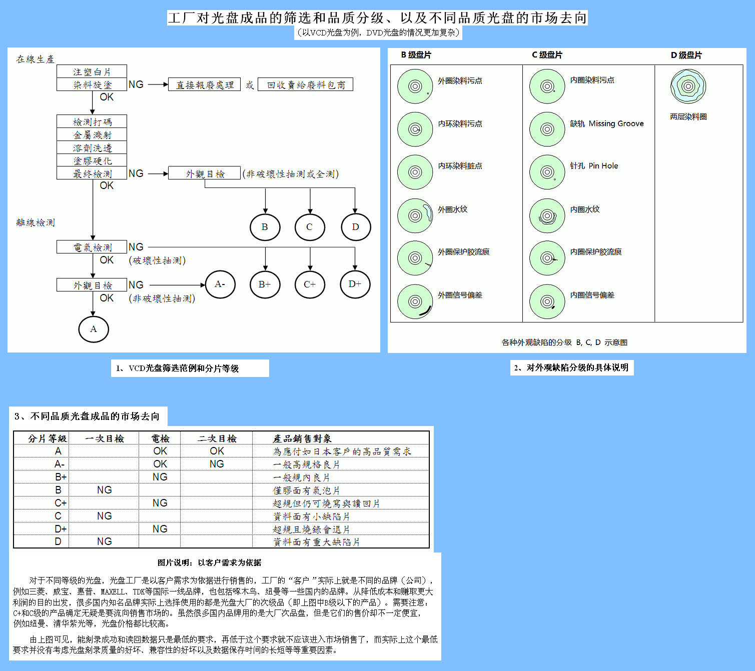 以上谈论的主要是VCD光盘,DVD光盘情况与此类似,而实际情况更加复杂(DVD光盘制造工艺要求更高)。