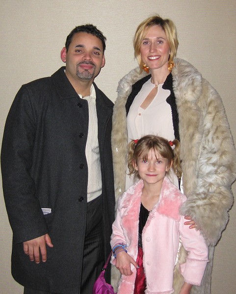 ![]() 专业舞蹈演员乔纪舞•布朗(Georgive Brown)(右)带女儿苏洛丝(Soluz)与在美国政府工作人员的友人卡罗斯•佳维尔-维祝(Carlos Javier-Vidro) |