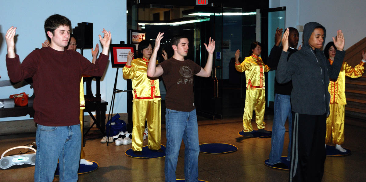 在看完功法演示后,很多观众专门赶到博物馆三楼的法轮功展台,寻找更多的功法资料。当了解到以“真善忍”为准则、祥和宁静的法轮功在中国遭到中共的残酷迫害时,许多人都感到十分不解,他们立即签名,声讨中共迫害法轮功,支持法轮功学员的反迫害。
