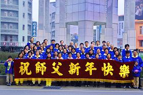 ![]() 台湾云林法轮功学员在云林斗六圆环附近祝贺法轮功创始人李洪志先生新年好 |