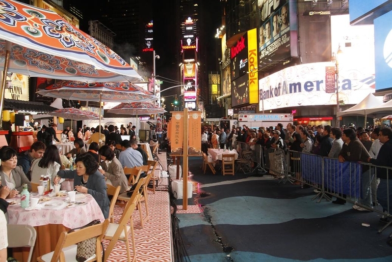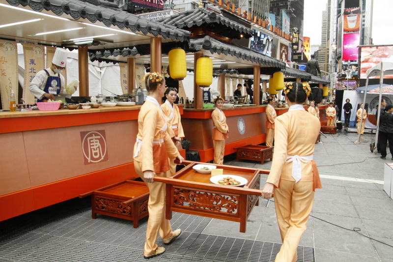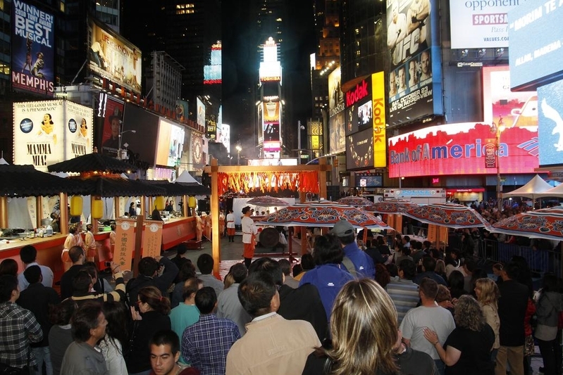 刚好经过时代广场的纽约人贝蒂(Betty)说:“闻到香味,我就买了票来吃。真令人吃惊,实在是好吃。尤其那道牛肉菜,味道美极了。”
