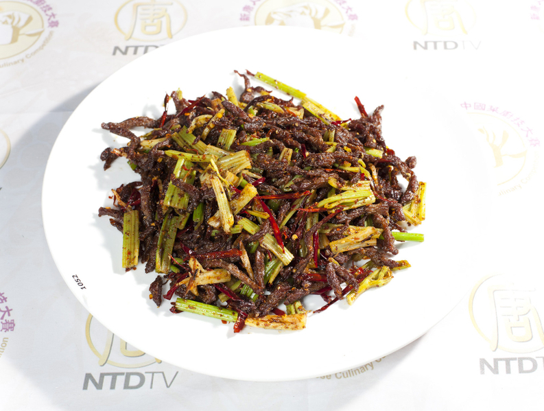 “新唐人举办大赛,将中国传统好的饮食文化介绍给全世界,让更多人了解,非常了不起。”他说明年还会再来。许健峰参赛的菜目是“雪菜百页毛豆”,典型的淮扬菜。