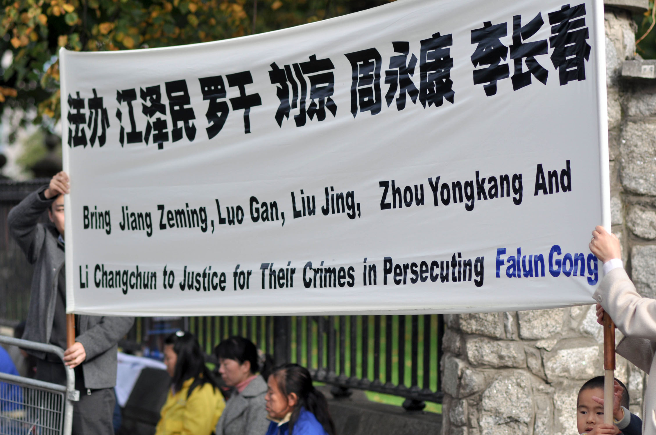 ![]() 爱尔兰法轮功学员打出“法办李长春”标语 |