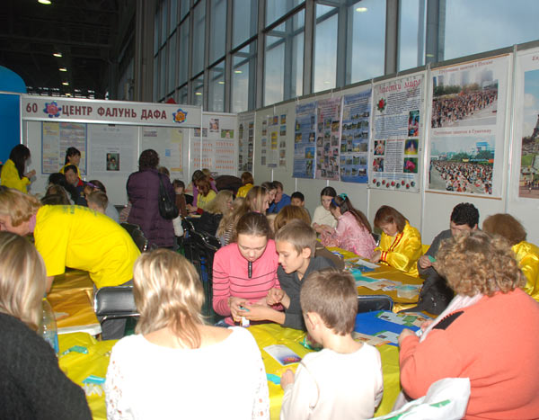 【明慧网二零一零年十一月十日】二零一零年十一月三日到七日,莫斯科市政府举办的第二十三届“儿童健康博览会”在莫斯科的全俄展览中心举行,当地法轮功学员也参加了本次博览会。法轮功的展台上摆放了很多彩色图片,记录了法轮大法在全世界一百多个国家传播,有上亿的学员在修炼的情况。当地法轮功团体每年两次参加该展会,举办方表示,几年来看到有的参展者就是为了卖东西,有的展品对儿童来说甚至有不好的因素,而看到法轮功的展位真是没有任何宗教、政治和商业的目的,确实是非常纯正高尚的功法,对儿童和家长都非常有益,非常感动,所以特别在价格等方面给予很大的优惠。