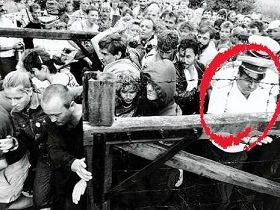 两名警察中的前面那个叫阿帕达•贝拉(Arpad Bella),是当时的值班警官,带着手下五名警察正当班。按照以往的规定,对任何企图越过边境去西边的人警察都可以开枪射杀。只因为他的一句命令“不许开枪”,使六百多名东德人得以成功逃往西德。