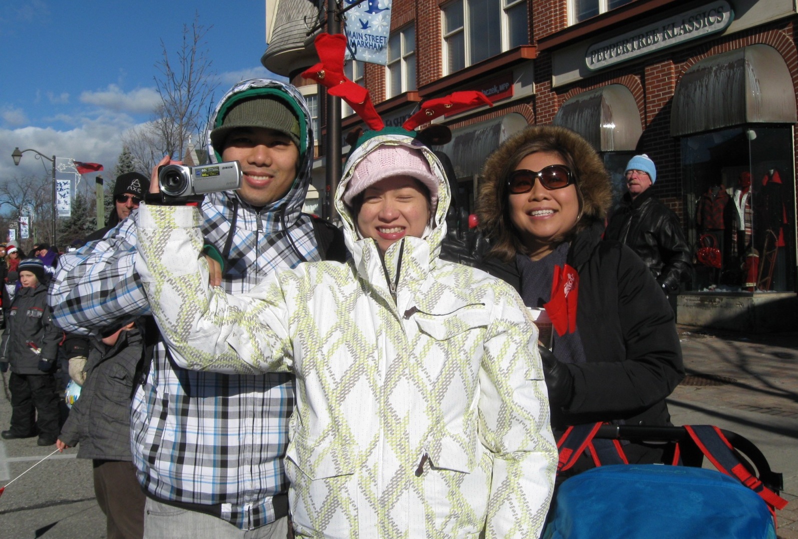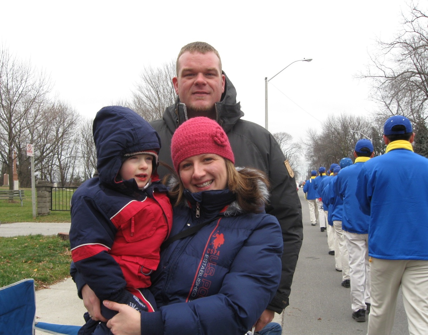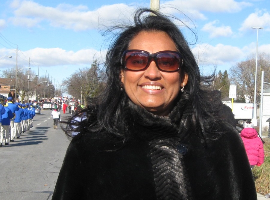 十一月二十七日多伦多的万锦市迎来了圣诞节的第一场雪。尽管天气很冷,但仍有很多热情观众出来观看游行。天国乐团的队伍被主办单位作为压轴队伍,排列在最后出现的圣诞老人的前面。天国乐团排队等待出发等了近两小时,但一出发天气就变清朗,太阳也出来了。有观众看到天国乐团后面跟着出现的圣诞老人,就兴奋地说:“谢谢他们把圣诞老人给带来了!”