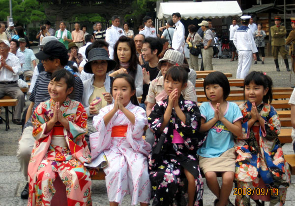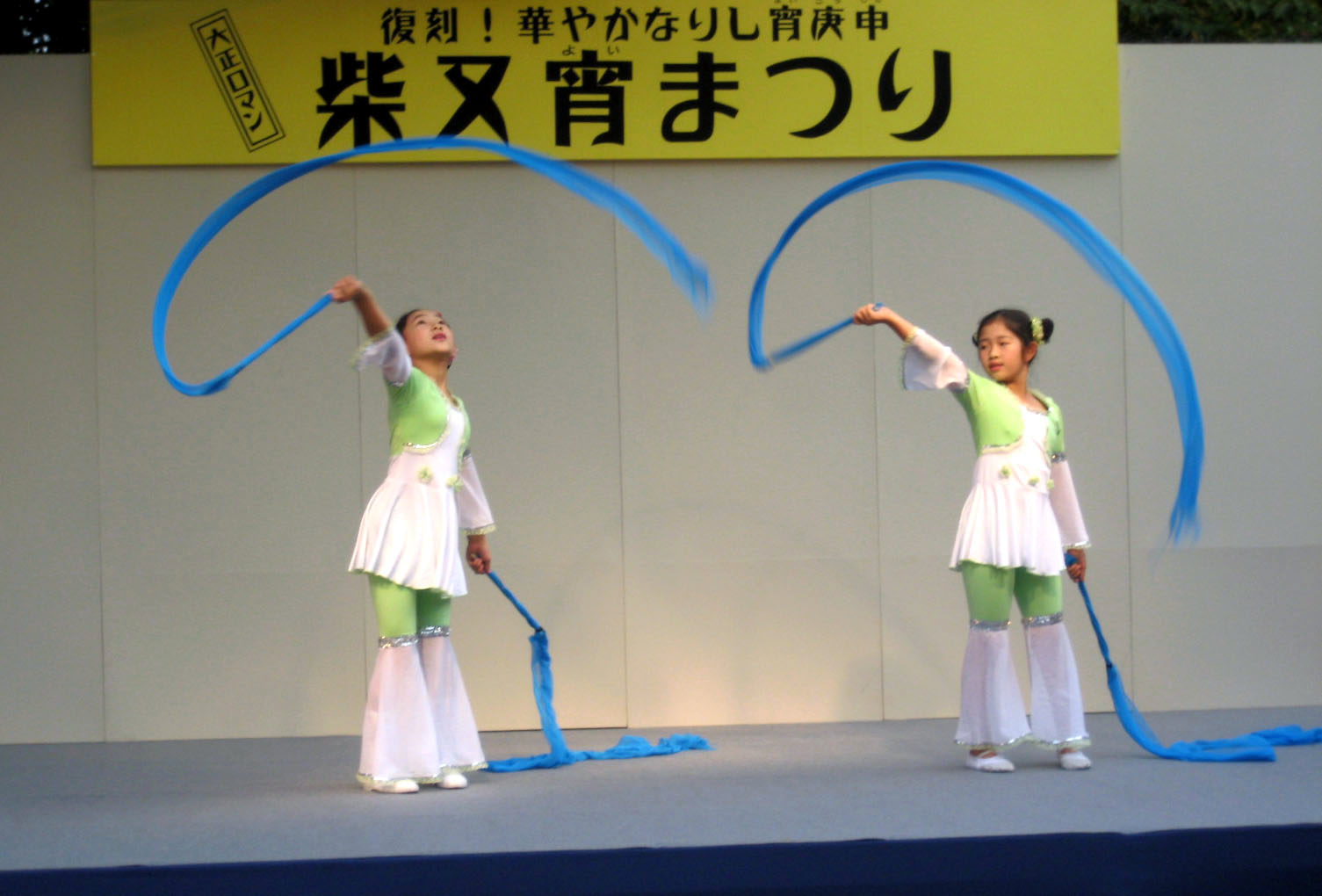 二零零八年九月十三日,日本法轮功学员的天姿舞蹈队及明慧学校的大法小弟子们受主办方邀请,参加了在日本东京都葛饰区柴又帝释天题经寺内举行的宵夜游艺会的晚会演出。