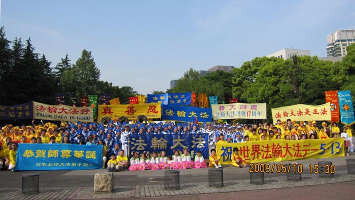 二零零九年五月九日法轮功学员聚集在东京有名的日比谷公园合影恭祝师尊生日快乐