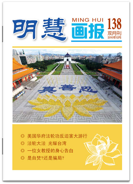 【封面】 台湾五千多名法轮功学员在台北中正纪念堂广场排出优美的莲花座与“真善忍”三个大字