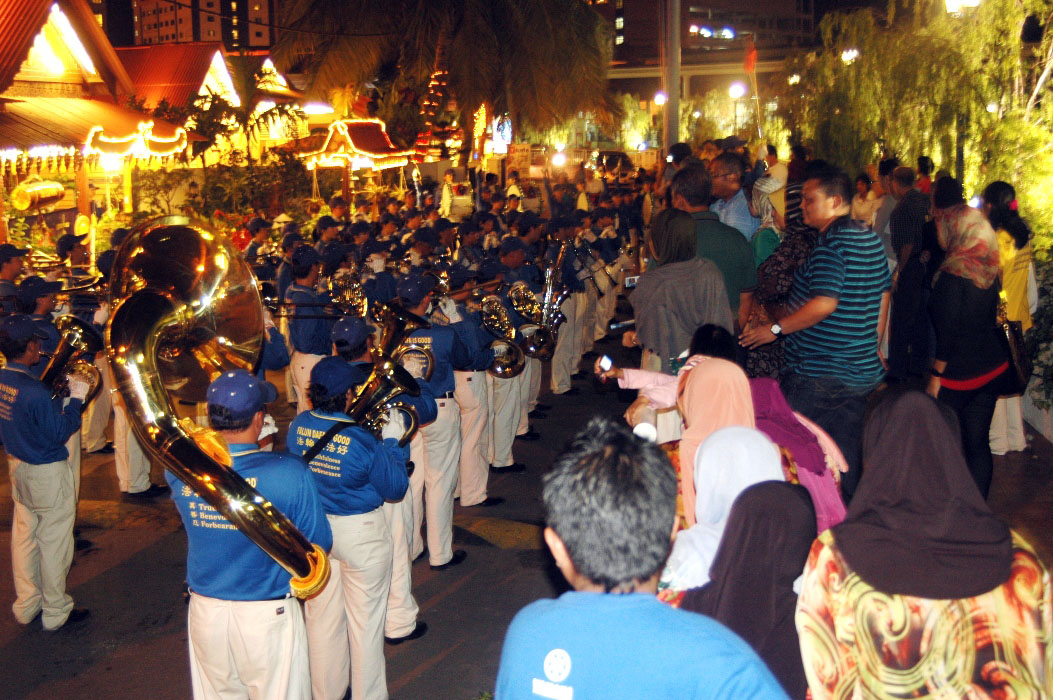 ![]() 天国乐团来到甘榜摩登村长住所前演奏 |