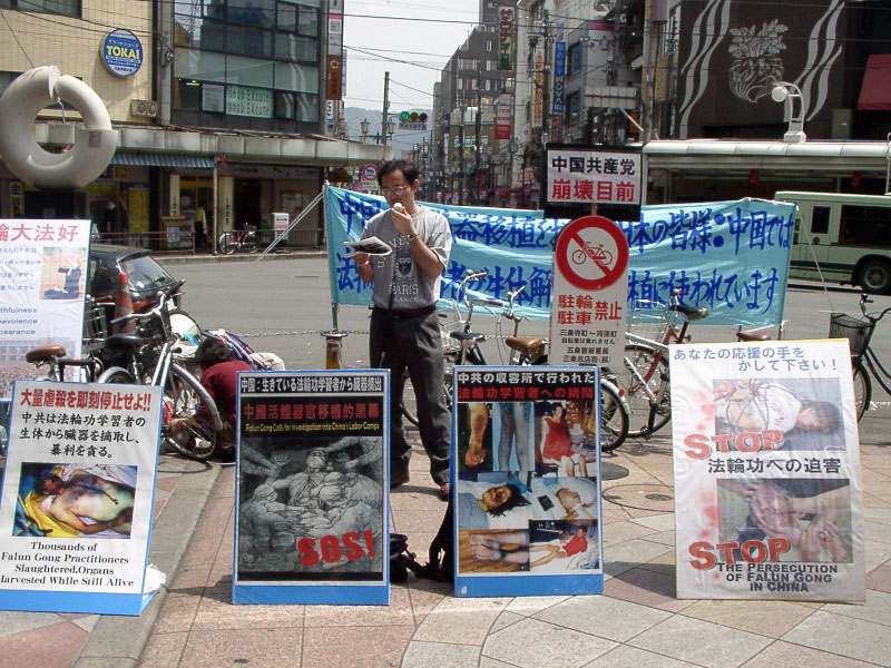 二零零六年五月黄金周休假,日本京都古城,春光明媚,是个难得的外出旅游的好时期。日本近畿法轮功学员利用这个时机连日向京都民众揭露近期被曝光的中共活体摘取法轮功学员器官进行买卖的惊人黑幕。