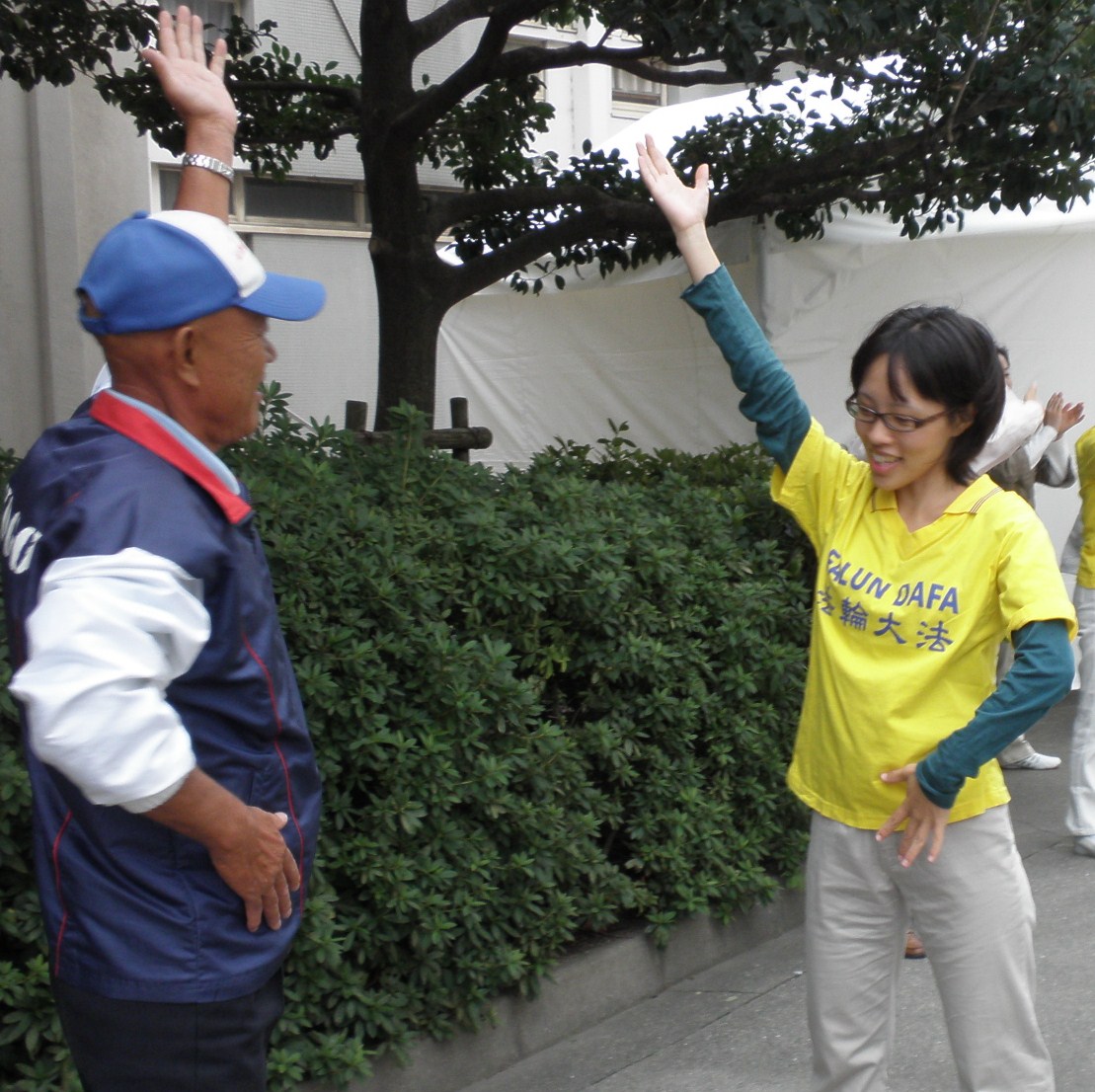 ![]() 法轮功学员在大阪城公园演示功法 |
