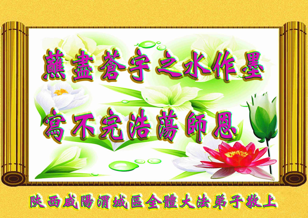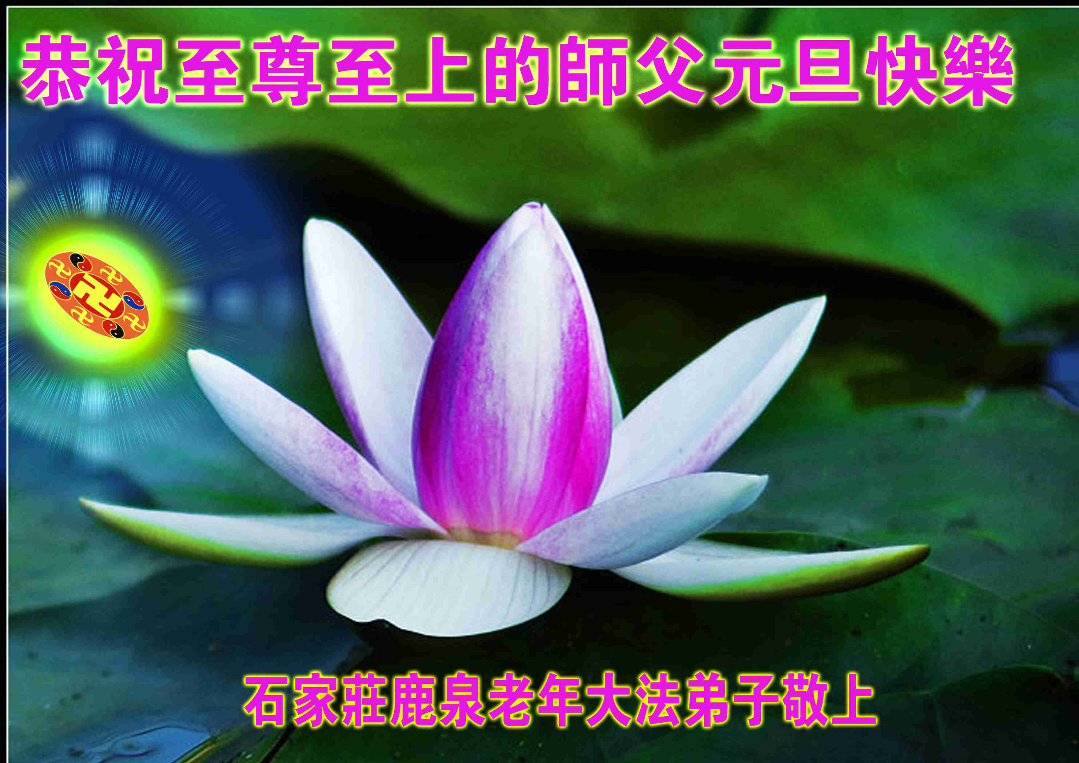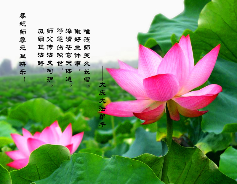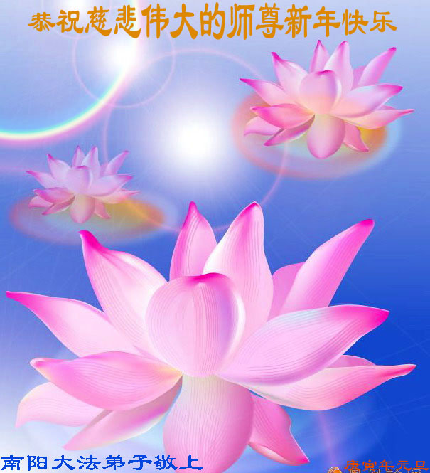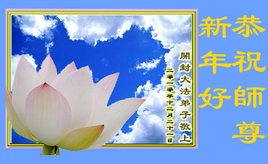 慈悲伟大的师尊您好!为了挽救宇宙无量众生于大劫将至前,您真是“操尽人间事 劳心天上苦”,弟子和所有明白真相的众生对您的浩荡佛恩感激不尽,在此新年到来之际,我代表所有被您救度的众生跪拜师尊,向师尊叩首问候:师尊新年好!师尊辛苦了!在正法進程即将结束前,弟子一定要把着大法坚修、实修,做好证实法的事,圆满完成师尊和众生的心愿,做一朵圣洁的莲,永远绽放、芳芳!